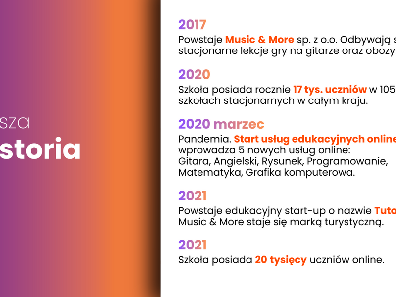 Tutore to dynamicznie rozwijająca się platforma edukacyjna, która od 2017 roku redefiniujestandardy nauczania w Polsce. Obecnie koncentruje się na dostarczaniu wysokiej jakości kursówonline, łącząc innowacyjne technologie z pasją doświadczonych pedagogów. Misją Tutore jest nie tylko przekazywanie wiedzy, ale przede wszystkim budowanie w uczniach pewności siebie, kreatywności oraz radości z odkrywania nowych umiejętności.